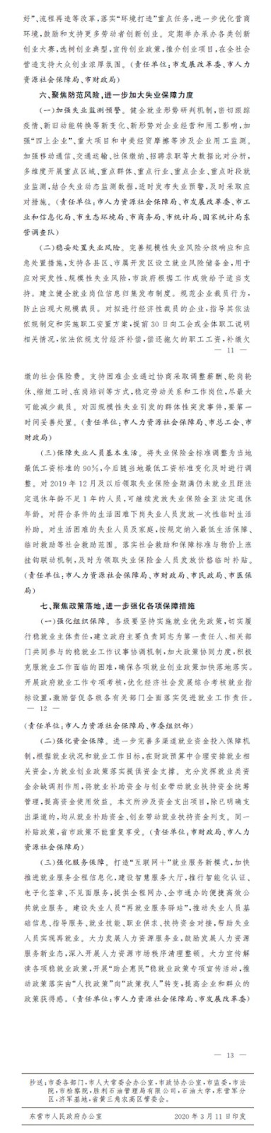 東營(yíng)市人民政府關(guān)于進(jìn)一步做好疫情防控形勢(shì)下穩(wěn)就業(yè)工作的若干政策措施的通知